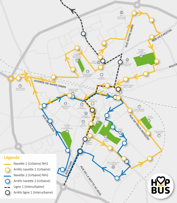 L'offre proposée par réseau Hop bus est complémentaire à celle existante sur le territoire, assurée par le réseau Arc en ciel de la région Hauts-de-France.